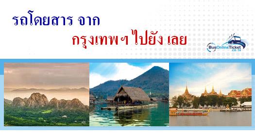 ไม่มีรถไฟจาก กรุงเทพฯ ไปยัง จังหวัดเลย ดังนั้นการเดินทางจาก กรุงเทพฯ ไปยังจังหวัดเลย ต้องเดินทางโดยรถประจำทางคือการขนส่งมราสถานี หมอชิต เพราะตั๋วเครื่องบินมักจะมีราคาแพง การเดินทางโดยรถปร่ะจำทางช่วยในเรื่องการประหยัดค่าใช้จ่าย การใช้บริการรถโดยสาร หรือรถบัสและยังช่วยประหยัดค่าใช้จ่ายในด้านของที่พัก โดยการเดินทางแบบข้ามคืนด้วยรถโดยสารประจำทาง เป็นแบแบล็คแพคเกอร์ ที่ต้องการเลือกเดินทางจาก กรุงเทพฯ ไปยัง จังหวัดเลย