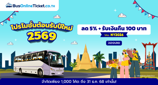จองก่อนคุ้มก่อน! ใช้โค้ด NY2026 ลดทันที 5% ทุกเส้นทาง พร้อมรับเงินคืน 100 บาท ถึง 31 ธ.ค. 2568 จำกัด 1,000 โค้ด